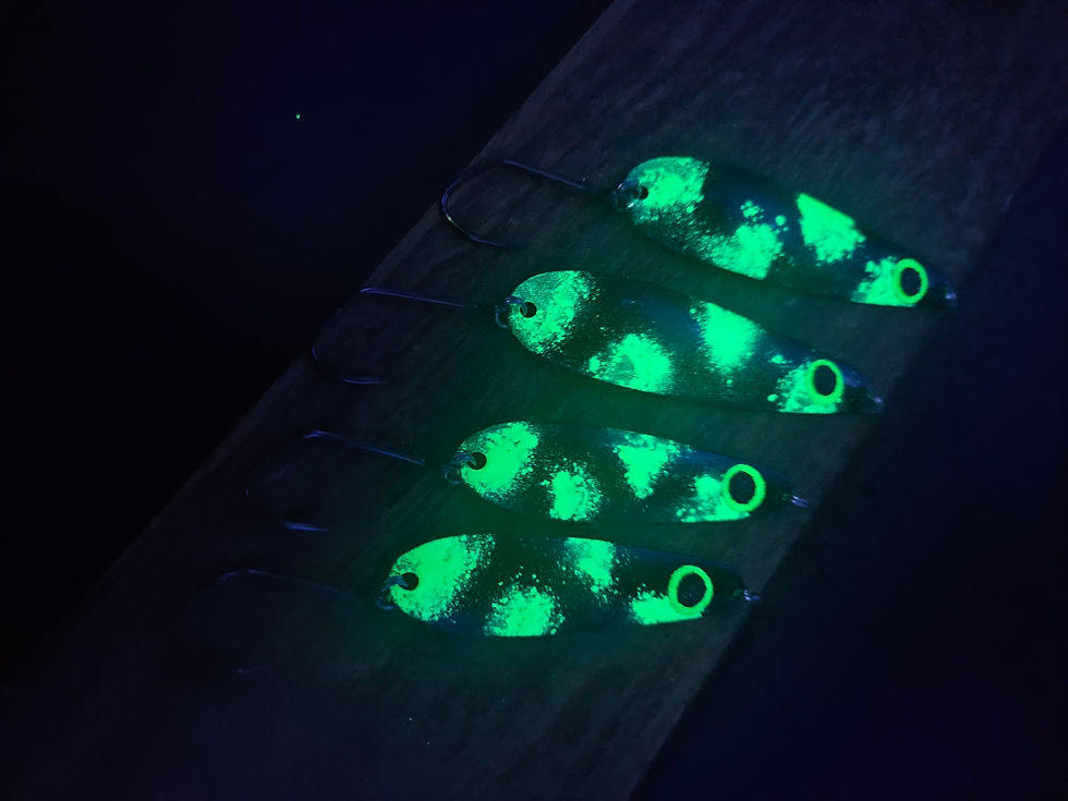 This is Grim Reefer requested by an angler and we provided. This Grim Reefer has Hyper-Vis green back with a UV Electric Yellow, a thin red stripe and scales on the belly. This jig has everything from sparkle, color and UV to add that attraction igniting a fish to strike your line. The jig comes with a split ring, barrel swivel, and 3/0 Matzuo hook in bag so you can either use the gear or add your own...your choice. Each order is for one jig. Thank you, Jason and Tyler.
